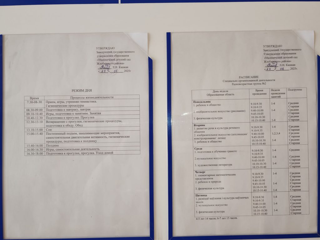 Распорядок дня и Расписание специально организованной деятельности